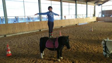 > Springstunden finden auf dem großen Außenplatz und im Winter in der Reithalle statt