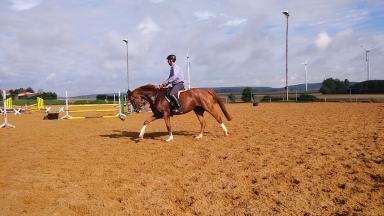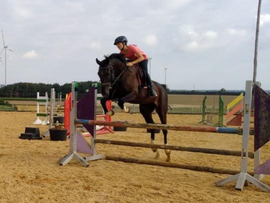 > bevor wir mit dem Springen beginnen, werden in Dressurstunden die Fertigkeiten im Reiten verschiedener Pferde überprüft