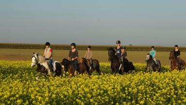> alle Ponys und Pferde sind durch regelmäßige Ausritte und Prüfungen zum Deutschen Reitpass geländesicher